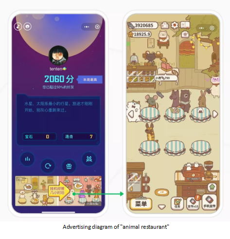 Wechat advertising also through version linkage with the "animal restaurant" team, feeds platform data back into the game optimization strategy at any time, reduces the error cost, so that each optimization can be accurate and efficient.