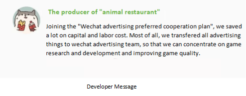 Through the "optimization cooperation plan", wechat advertising will provide more high-quality games with "hosted" services, so that developers can devote more energy to the research and development of high-quality content, so that more high-quality games would emerge and high-quality content can get more value returns. In the future, the realization of high-quality games will be more and more simple, and the ecology will be more and more rich.