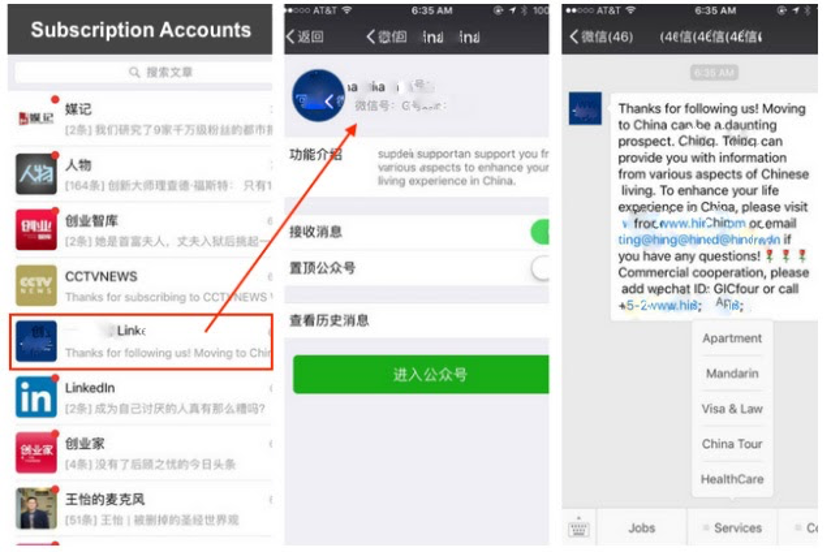 WeChat contains a search bar and search function for Official Accounts. Note for this function is that we have to type the name of the account fairly accurately to find that particular business account and is not really used for discovery. Therefore, creating the easily-to-be remembered brand / business name is significantly important at the beginning stage of market entry using WeChat Official account.
