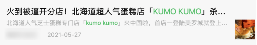 Since KUMOKUMO's formula comes from Japan, it has repeatedly used the words "Hokkaido Cheesecake" and "China's First Store" in its publicity to create an imported brand in the Chinese local market" to create selling points and promote the desire to buy.