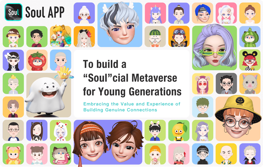 Soul is the app that "helps people fall into relationships". Since 2015, Soul learned experiences from strangers' social apps, such as MoMo and TanTan, and explored a new mode of "soulmate socialization". On Soul, face value and geographical location became unnecessary. And soon, it had been recognized by the GenZ, who craved for identity and companionship. In 2021, the content on Soul received a total of 574 million replies, and 89.1% of active users established deeper contacts with others on various apps via Soul. Meanwhile, Soul‘s listing on the NASDAQ was called off midway through. When Soul filed for a second time with the Hong Kong Stock Exchange for another listing, it highlighted the concepts of social Metaverse and virtual socializing in its prospectus. The "social metaverse" became an ultimate goal for Soul.