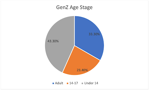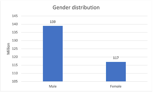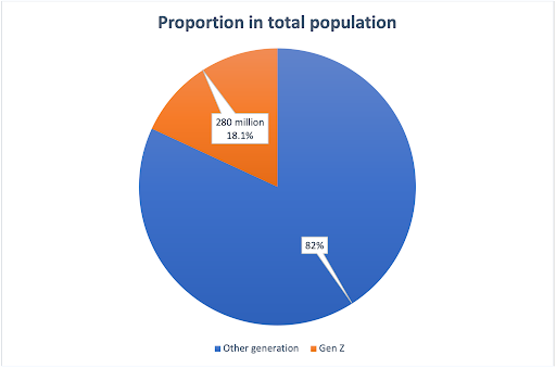 As a population of 280 million, one-third of Gen Z has reached adulthood, and more than 54% are men. There are 20 million more men than women, which is the group with the largest gap between men and women of all ages.